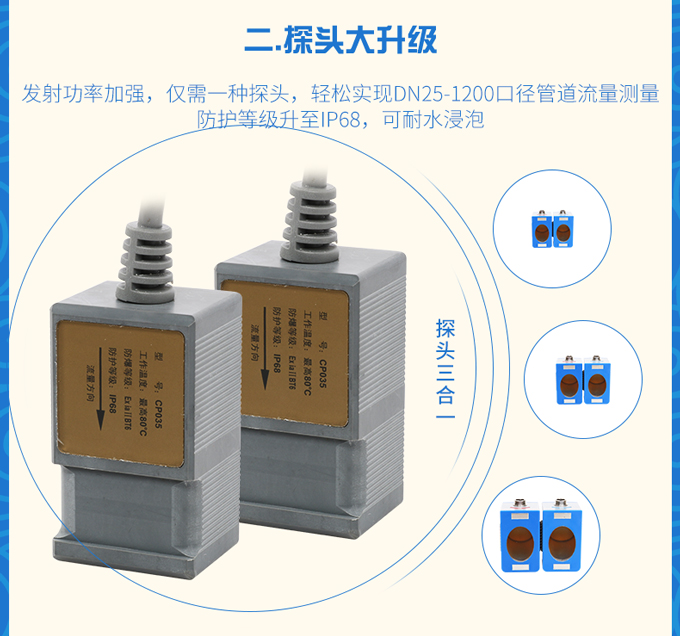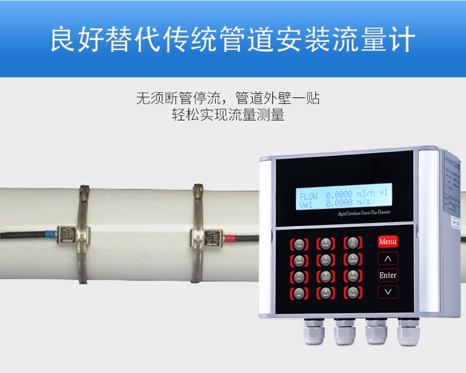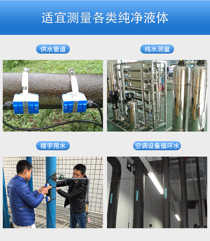 聯測超聲波流量計適合相對純凈液體流量的管外測量,尤其是在水流量測量、在工業循環水、空調制冷循環水、原水、高壓水、自來水,污水排放管等廣泛應用。