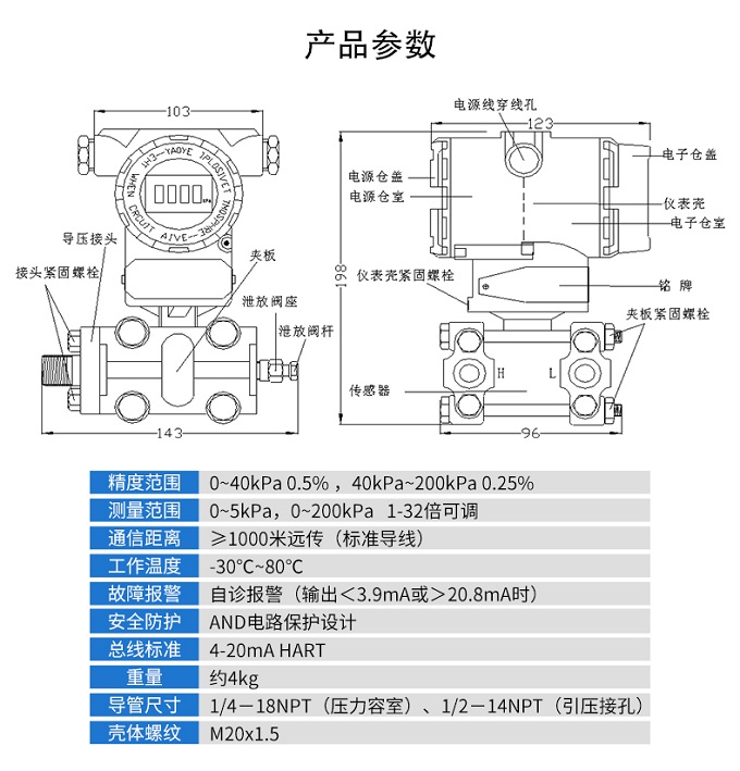 SIN-3051系列壓力變送器利用差動(dòng)電容檢測(cè)的原理,當(dāng)膜片兩側(cè)壓力不一致時(shí),使容室中測(cè)量膜片產(chǎn)生位移,其位移量與壓力差成正比,通過(guò)電路處理將電容變化量轉(zhuǎn)換成4~20mA的二線制電流或電壓信號(hào),可帶上458協(xié)議或者HART通訊協(xié)議功能。該變送器具有堅(jiān)固抗振,量程,零點(diǎn)和阻尼現(xiàn)場(chǎng)連續(xù)可調(diào)。