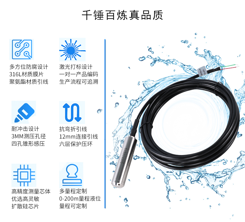 SIN-P261投入式液位變送器由高性能擴散硅壓阻式壓力傳感器作為測量元件,把與液位深度成正比的液體靜壓力準確測量出來。